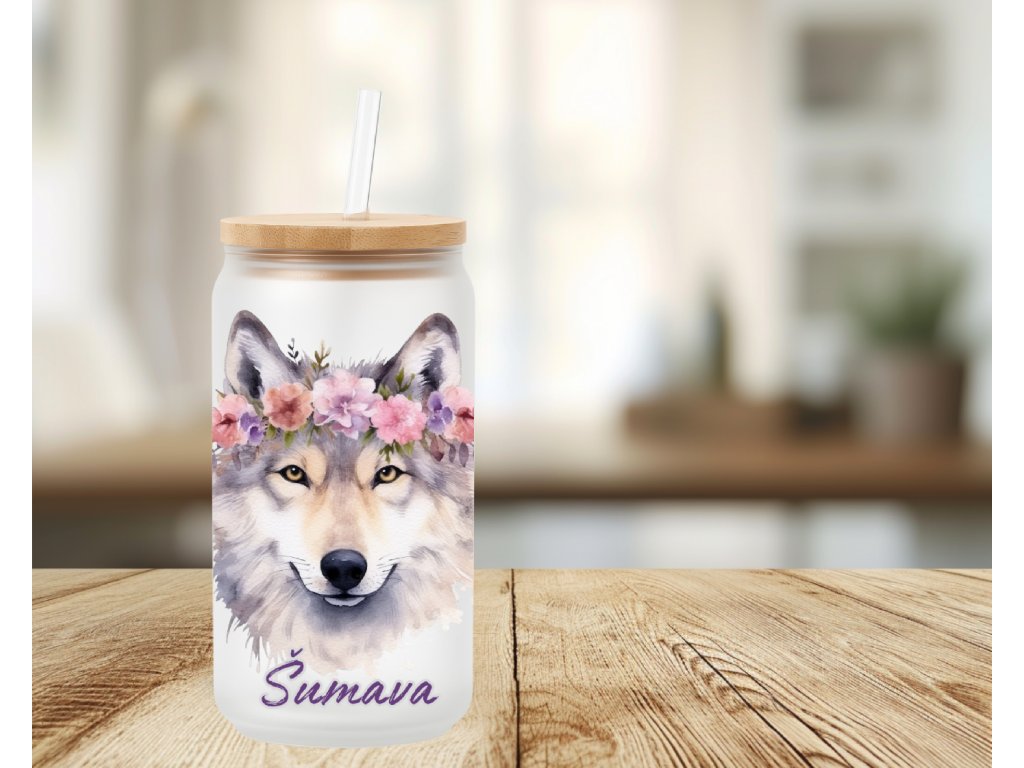 Unikátní designová sklenička s nádherným potiskem vlka s květinovým věnečkem a nápisem „Šumava“ potěší každého milovníka přírody a krásné Šumavy 🌲. Skvěle padne do ruky a hodí se na studené i teplé nápoje.