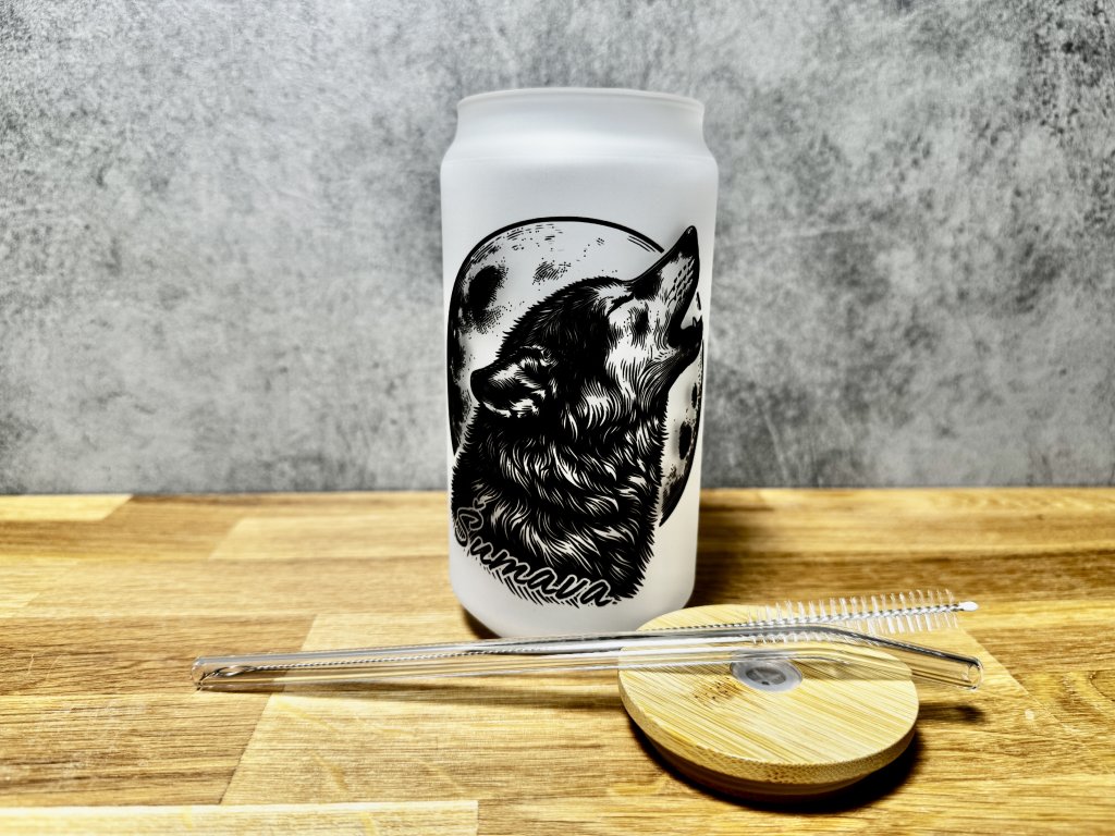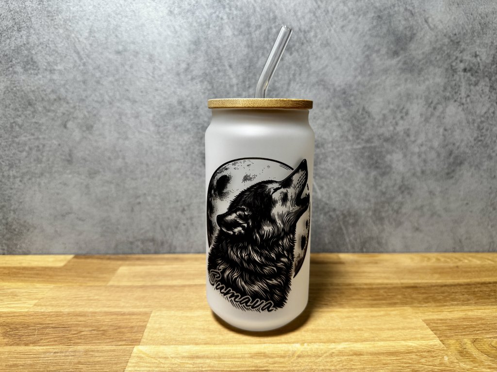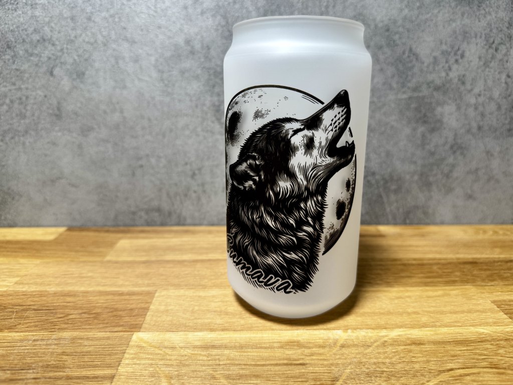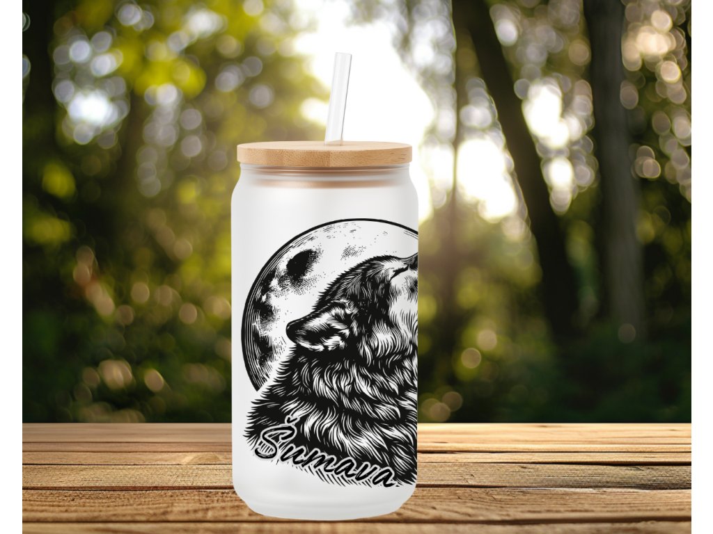 Sklenička s výraznou černobílou kresbou vyjícího vlka a motivem měsíce je designovým kouskem, který v sobě spojuje sílu i estetiku. Díky nápisu Šumava se hodí jako památka z vašich cest nebo jako dárek pro ty, kteří si zamilovali krásy přírody.