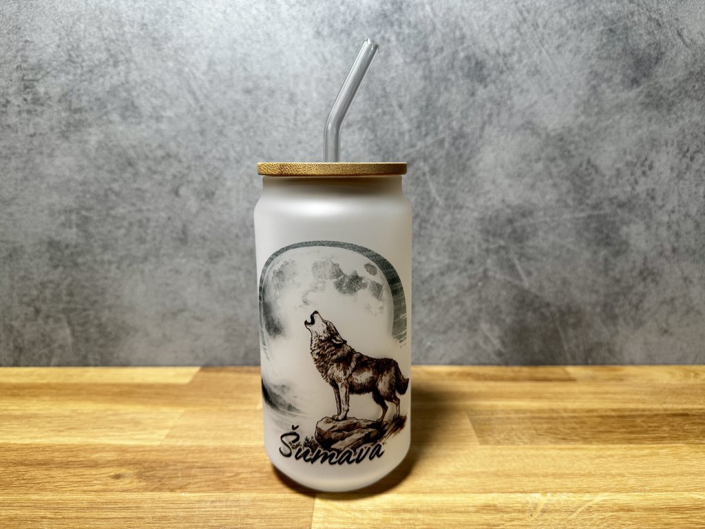 550 ml - Sklenička s vlkem vyjícím na měsíc – Šumava