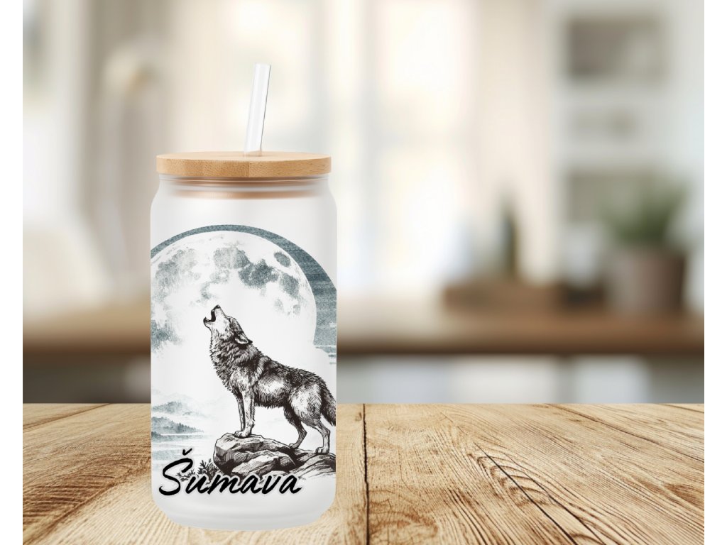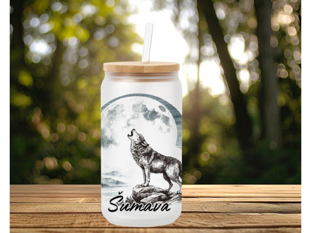 550 ml - Sklenička s vlkem vyjícím na měsíc – s nápisem Šumava (možno i bez nápisu)