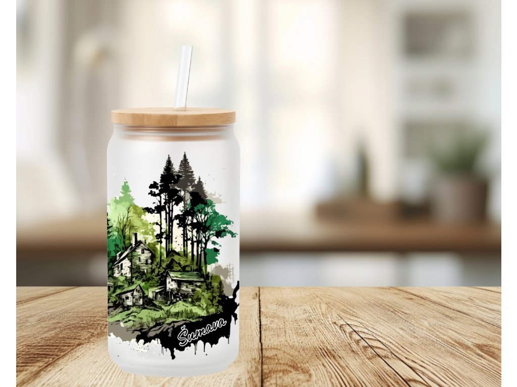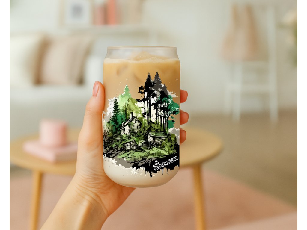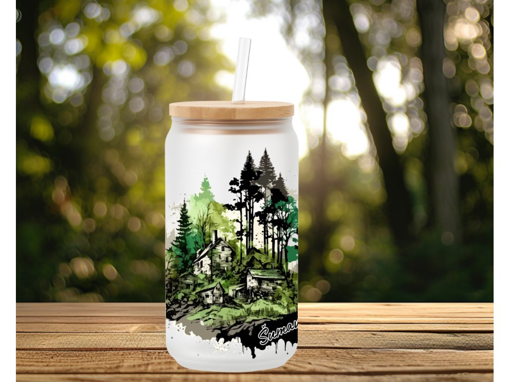 Zelené tóny a malebná šumavská osada obklopená lesem – tato sklenička s potiskem zachycuje klid a krásu české přírody. Vhodná pro všechny, kteří si chtějí připomínat kouzlo hor při každém doušku.