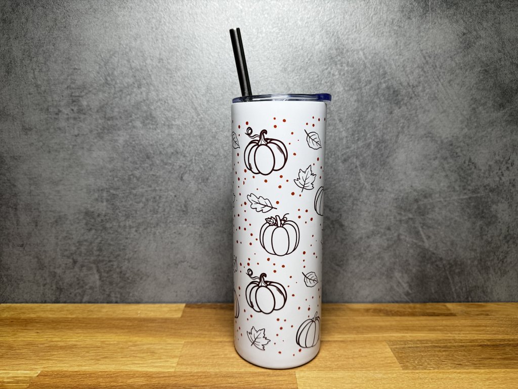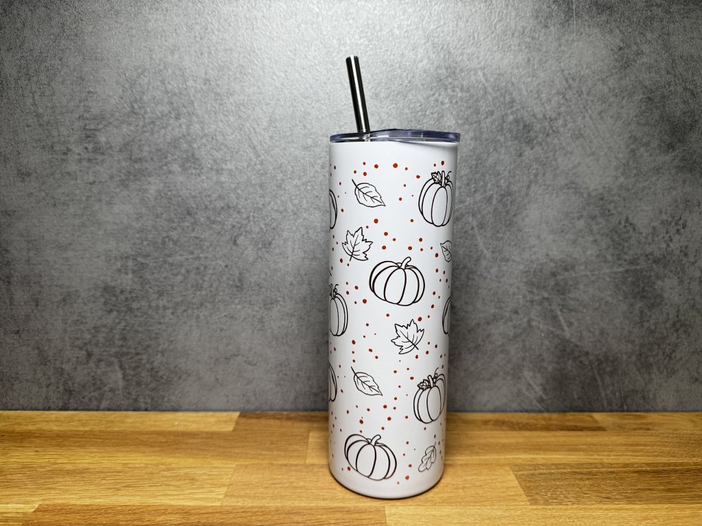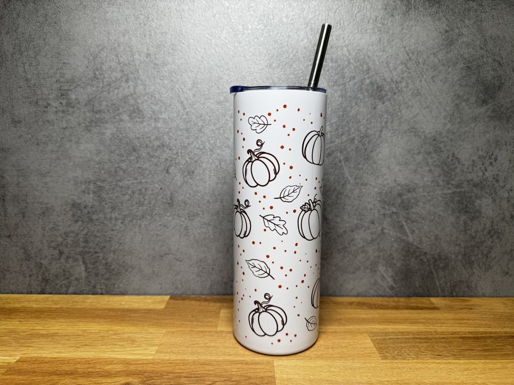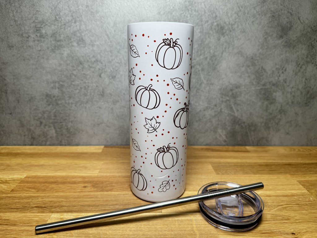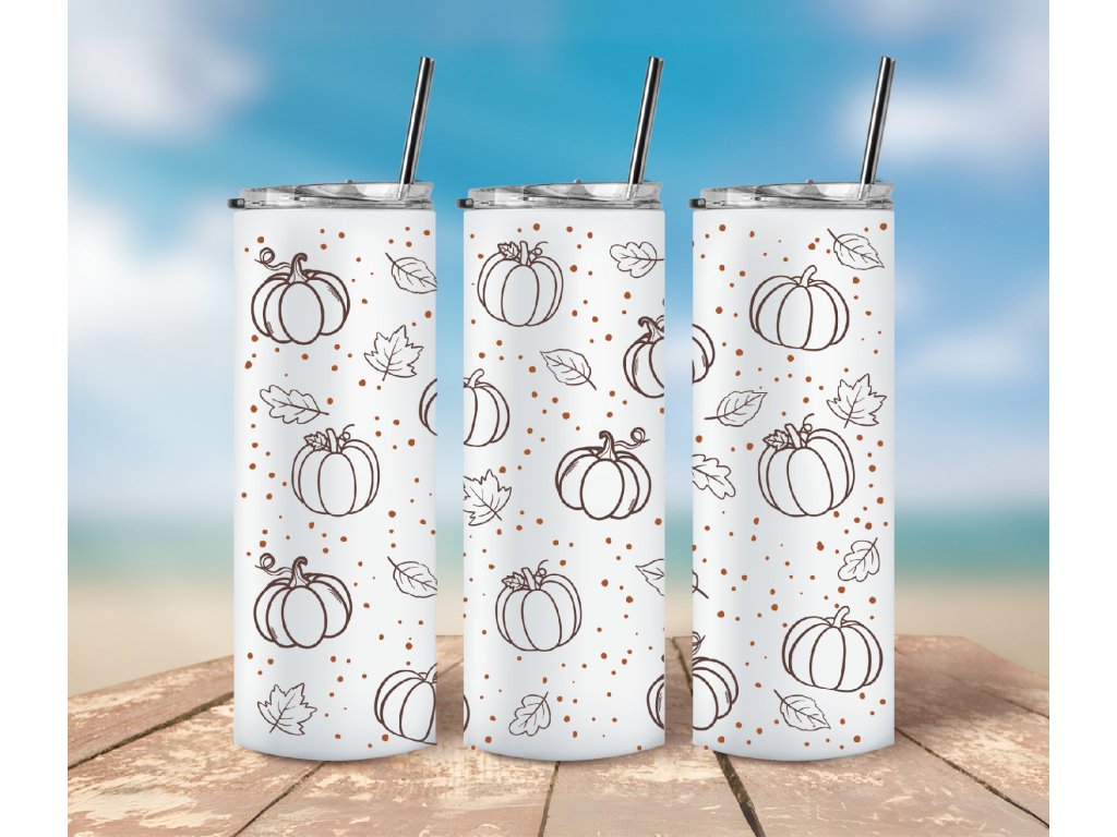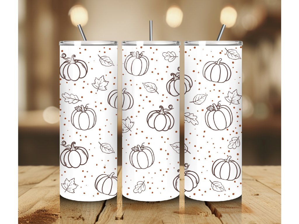 Elegantní podzimní termo kelímek s aesthetic dýněmi a listy 🍁