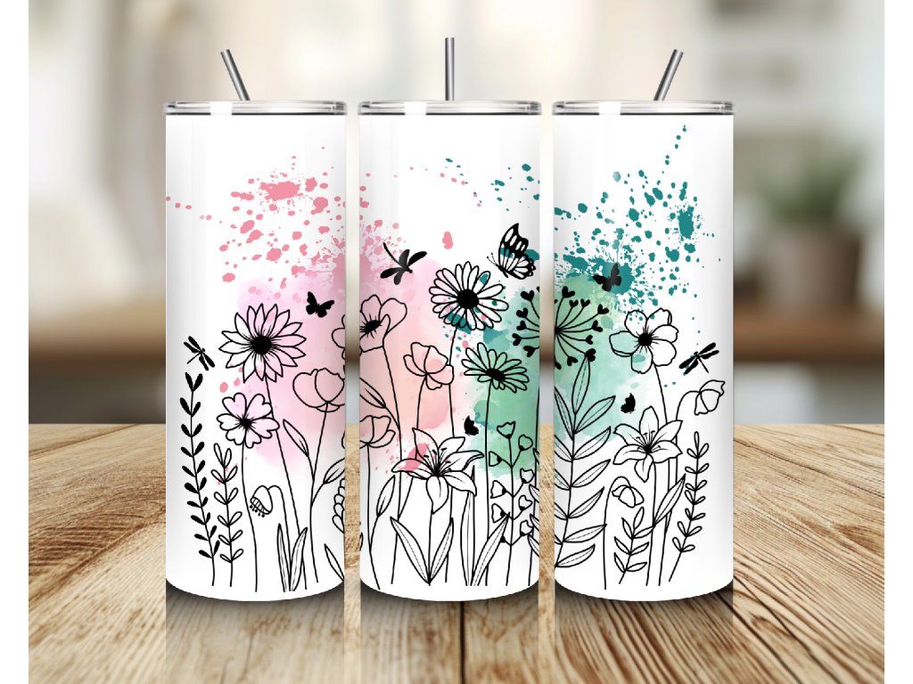 Tento jemný a veselý termo kelímek s designem květin a motýlů je ideální pro všechny, kdo chtějí pracovat v harmonii. 🌷
