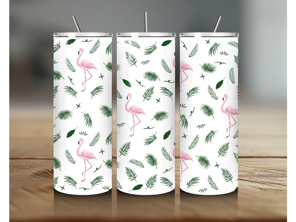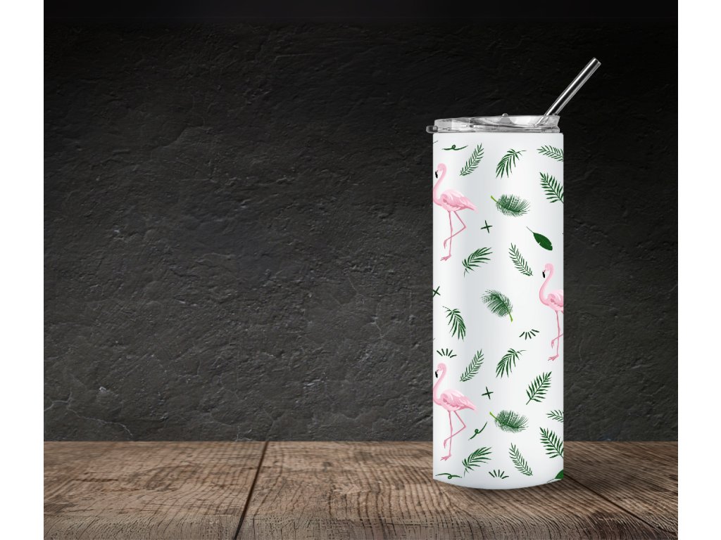 Termo kelímek s letním motivem - Plameňáci a tropické listy