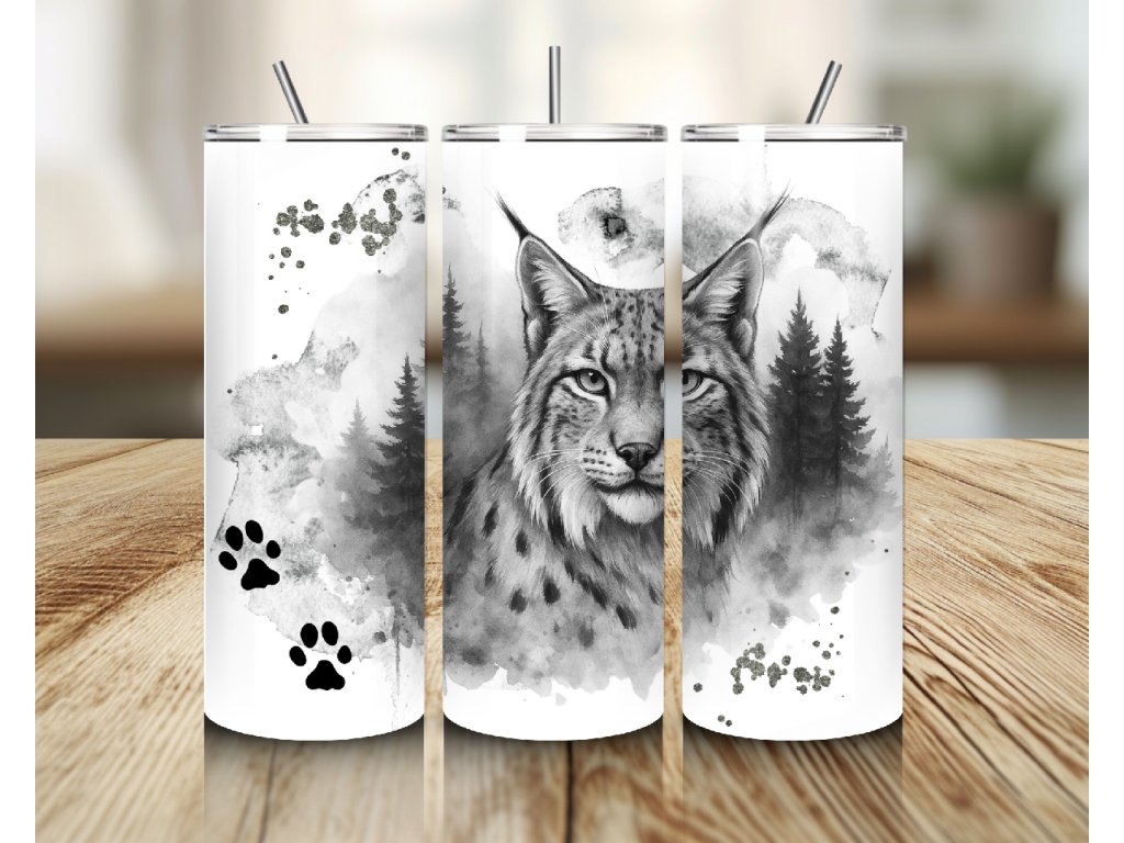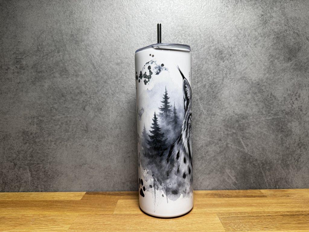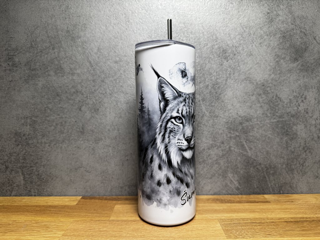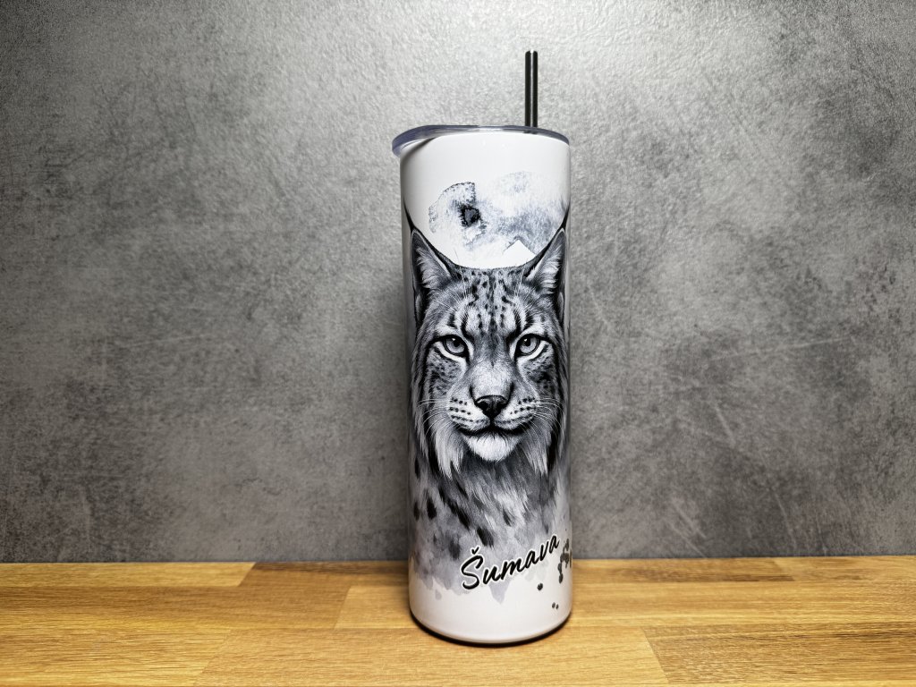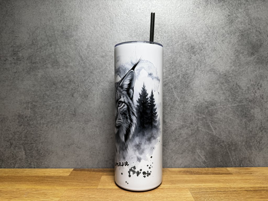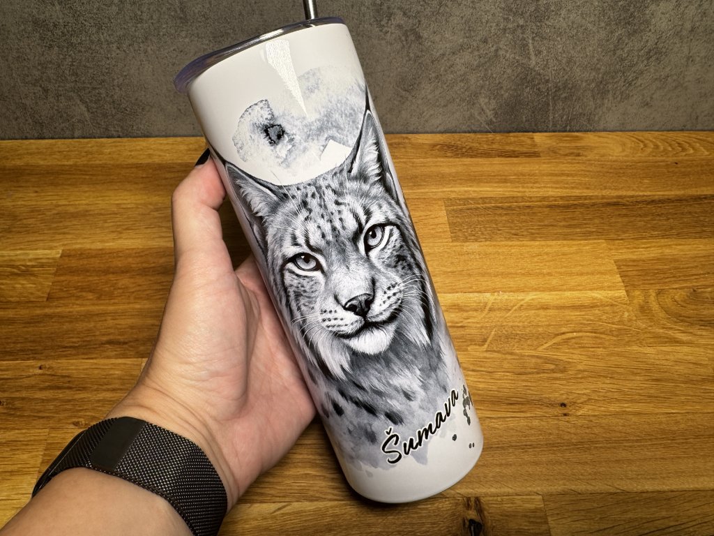 Elegantní termo kelímek s motivem rysa – Ideální termohrnek pro milovníky přírody a lesa 🐾🌲