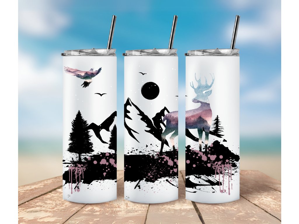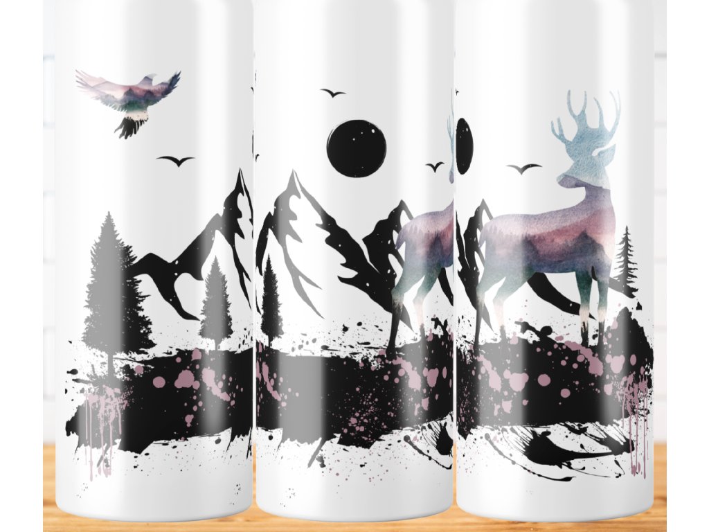 Termo kelímek s motivem hor - srnec v krajině 🦌✨🖤🌲⛰️