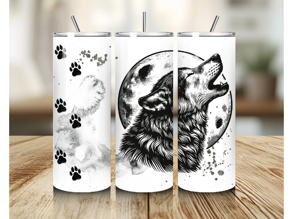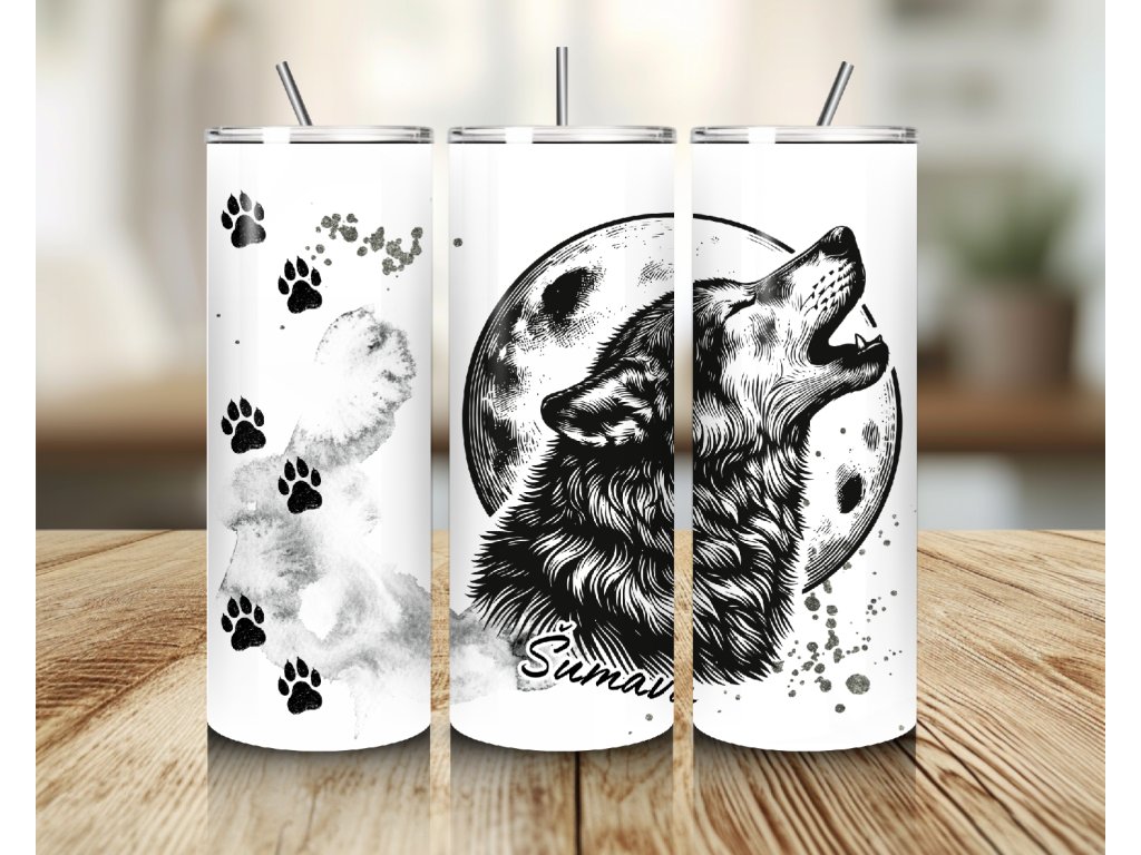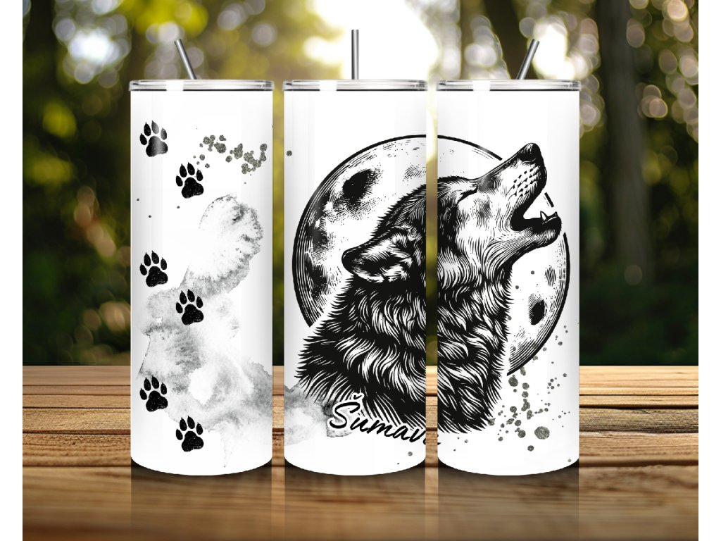 Tajemný, silný a divoký. Tento termo kelímek s motivem vlka vyjícího na měsíc je ideální pro všechny milovníky přírody, volnosti a noční atmosféry 🌕🐺. Design doplňují stylové stopy tlapek a šedé textury, které dávají kelímku autentický a moderní vzhled.