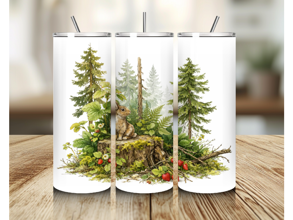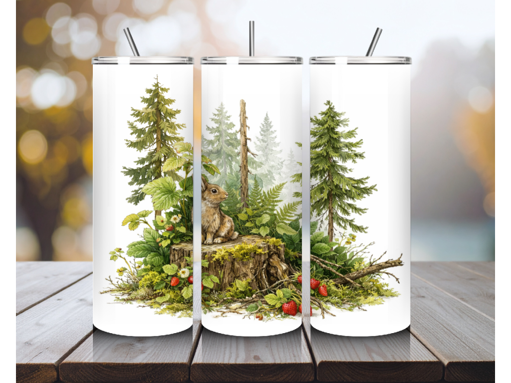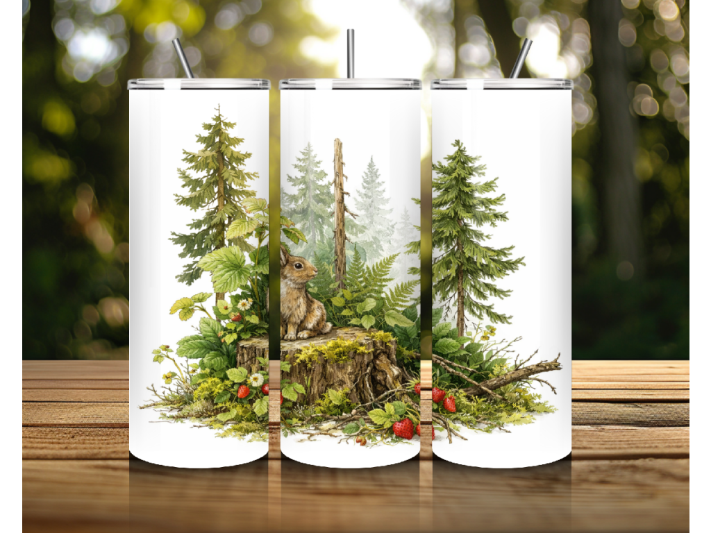 Originální termo kelímek ze Šumavy s motivem zajíce v lese je krásnou volbou pro všechny, kdo milují klid přírody, lesní zvířata a šumavskou atmosféru 🌲🐇 Jemná ilustrace zachycuje zajíce u pařezu obklopeného stromy, kapradím, mechem a lesními plody, takže celý motiv působí velmi přirozeně, něžně a harmonicky.