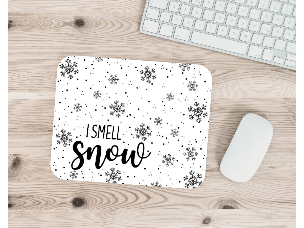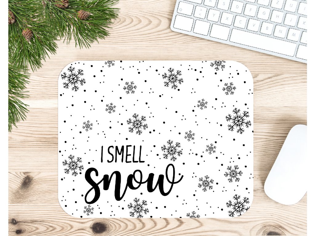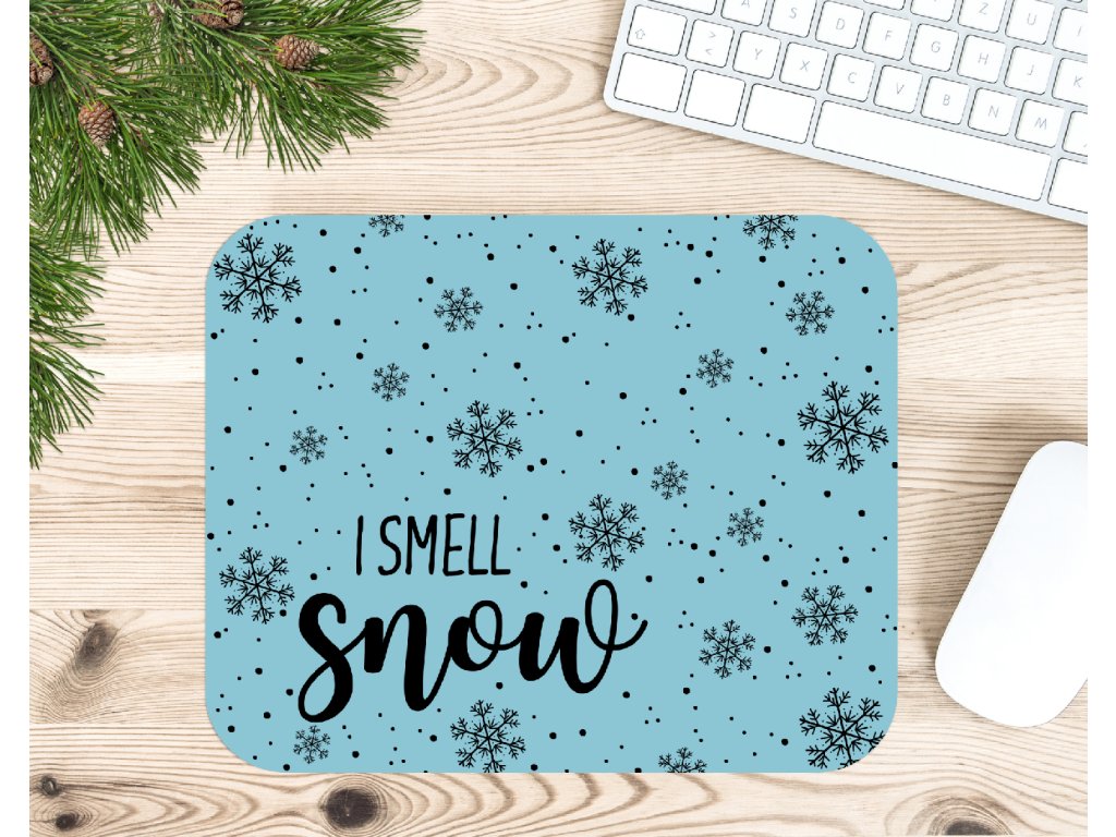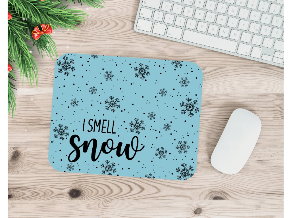 Tahle vánoční podložka pod myš s nápisem I smell snow je ideální pro všechny, kteří milují sníh, horké kakao a útulné chvíle u počítače.