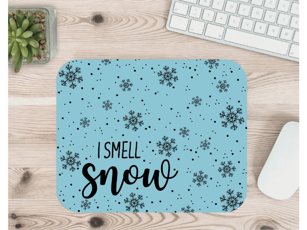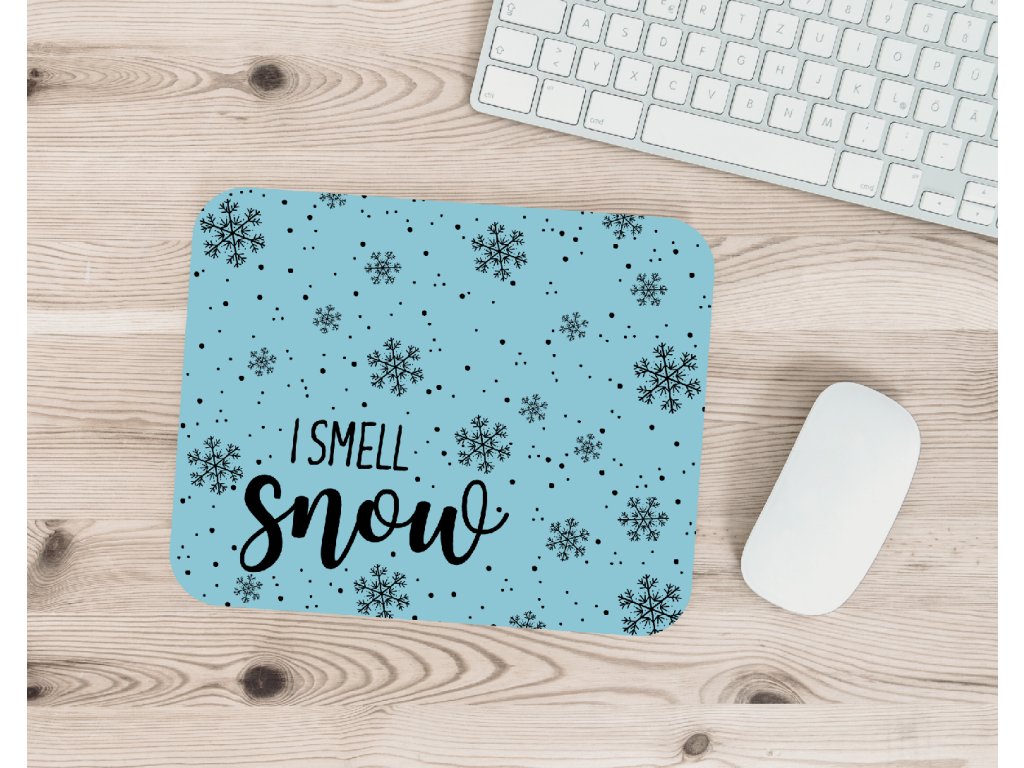 Zimní podložka pod myš I smell snow – jemný sněhový design, perfektní pro všechny milovníky zimy ❄️ K dispozici v modré a bílé variantě.