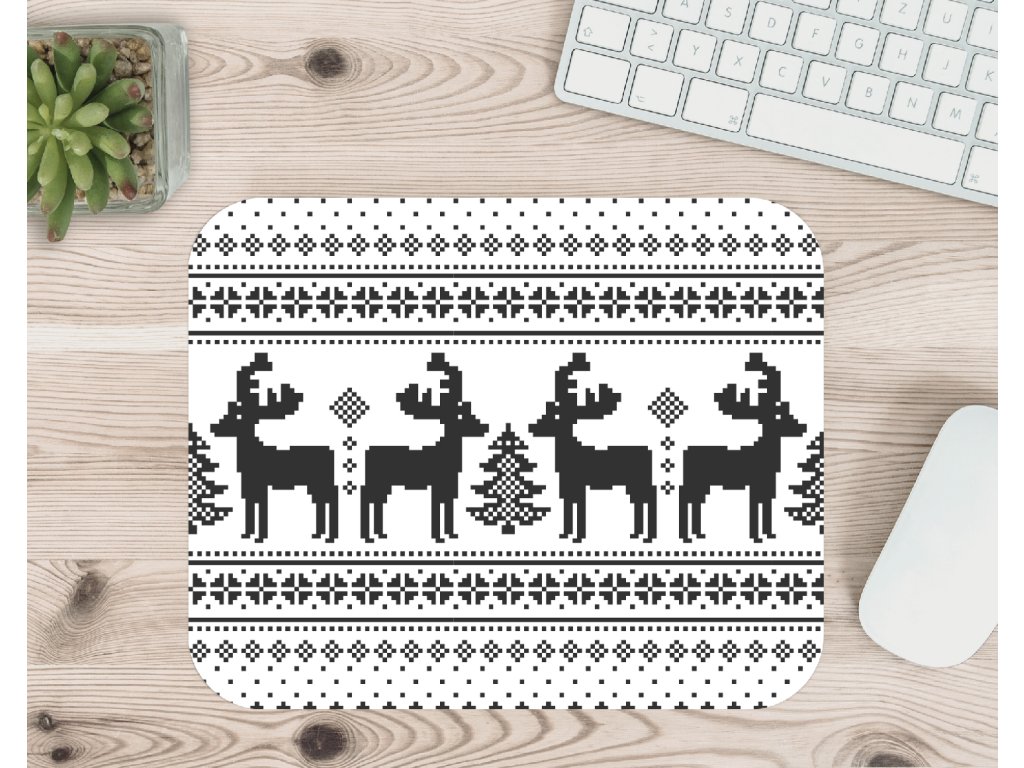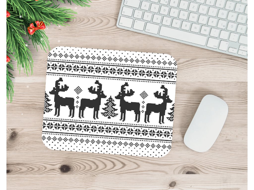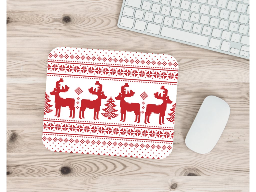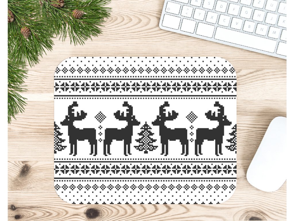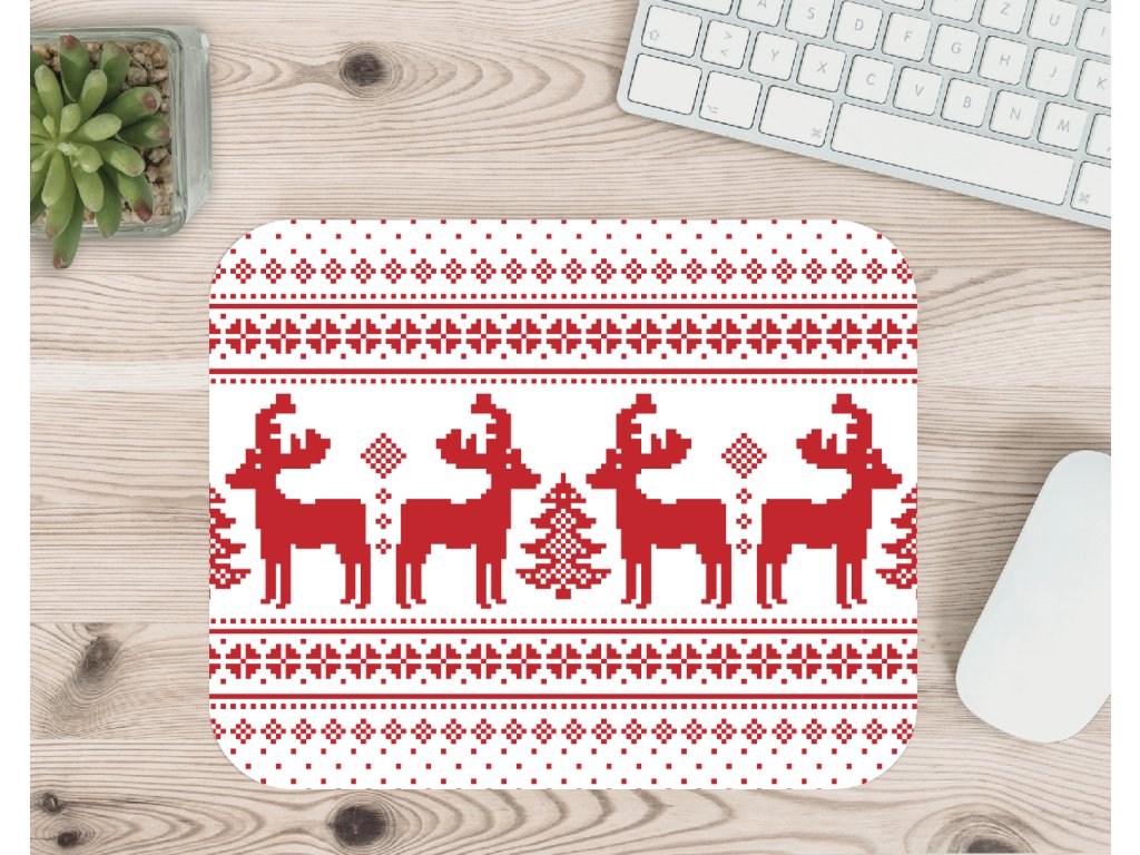Vánoční podložka pod myš s motivem pleteného „svetrového“ vzoru a jelenů přinese kousek zimní atmosféry přímo na váš pracovní stůl.