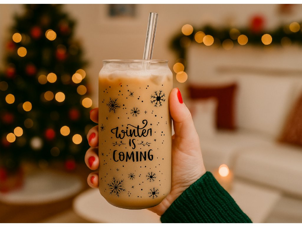 550 ml – vánoční sklenička Winter is Coming ❄️ Elegantní čirá sklenice s vločkami a nápisem, který předznamenává příchod zimy.